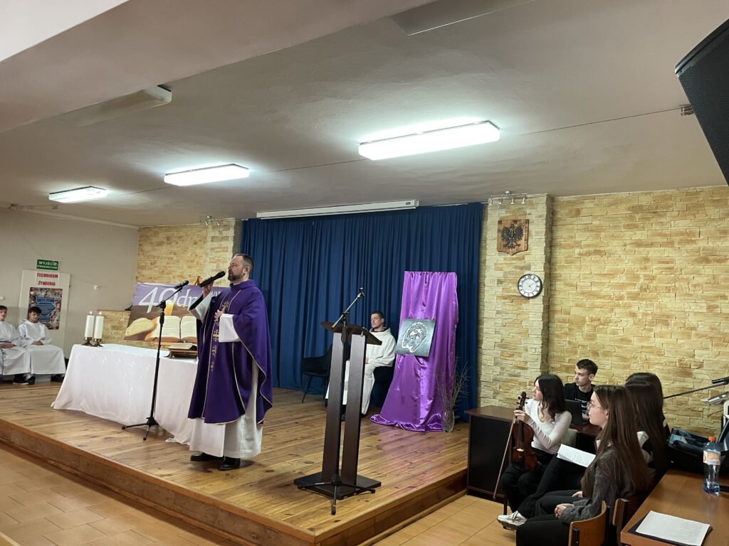 6 marca w naszej szkole odbyły się Rekolekcje wielkopostne. To szczególny czas modlitwy i refleksji nad życiowym powołaniem do bycia kobietą i mężczyzną.Konferencje wygłosili zaproszeni goście- Anna i Grzegorz Powideł, którzy podzielili się swoim świadectwem życia w małżeństwie i rodzinie. Eucharystia sprawowana przez o.Tomasza stała się okazją do przemiany serca …